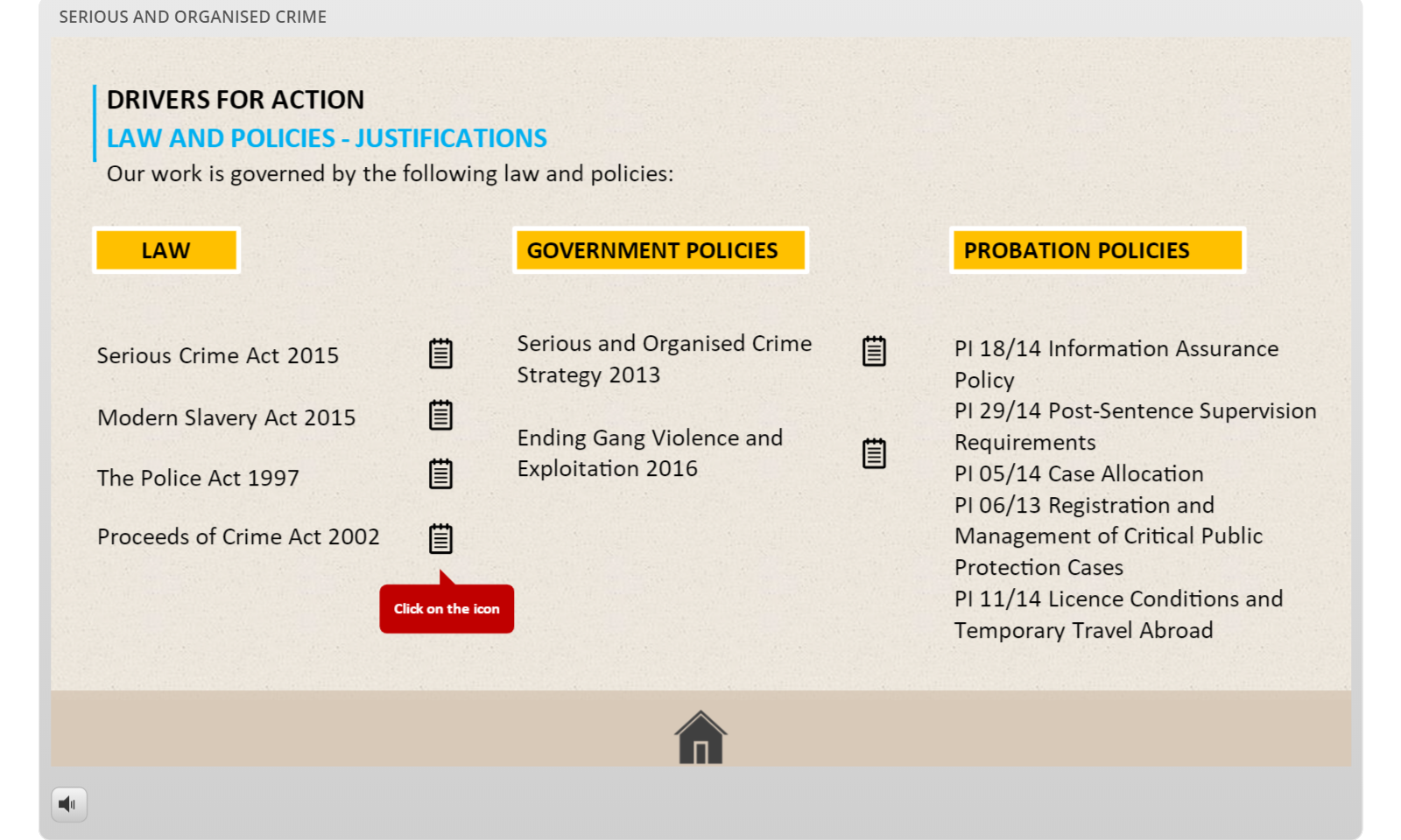 This eLearning module formed part of a wider initiative to modernise training and onboarding across HMPPS. The focus was on simplifying complex terminology and operational jargon, making challenging subject matter more accessible. The module helped new staff better understand serious and organised crime concepts and apply them confidently in their roles.